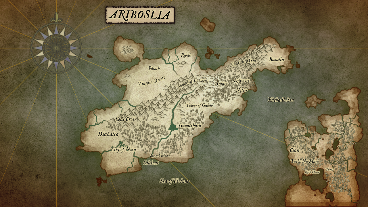 Ariboslia is another realm that exists alongside ours. The original inhabitants, the pech, are small dwarf-like creatures. They create megaliths and amulets that allow for travel between the realms: Ariboslia and ours. Shapeshifters existed in our realm long ago, but the humans began to revere them as gods. The One True God became jealous and transplanted them to Ariboslia and memories of shapeshifters in our realm faded, eventually becoming myth. Unfortunately, the new inhabitants in Ariboslia drove the pech underground.