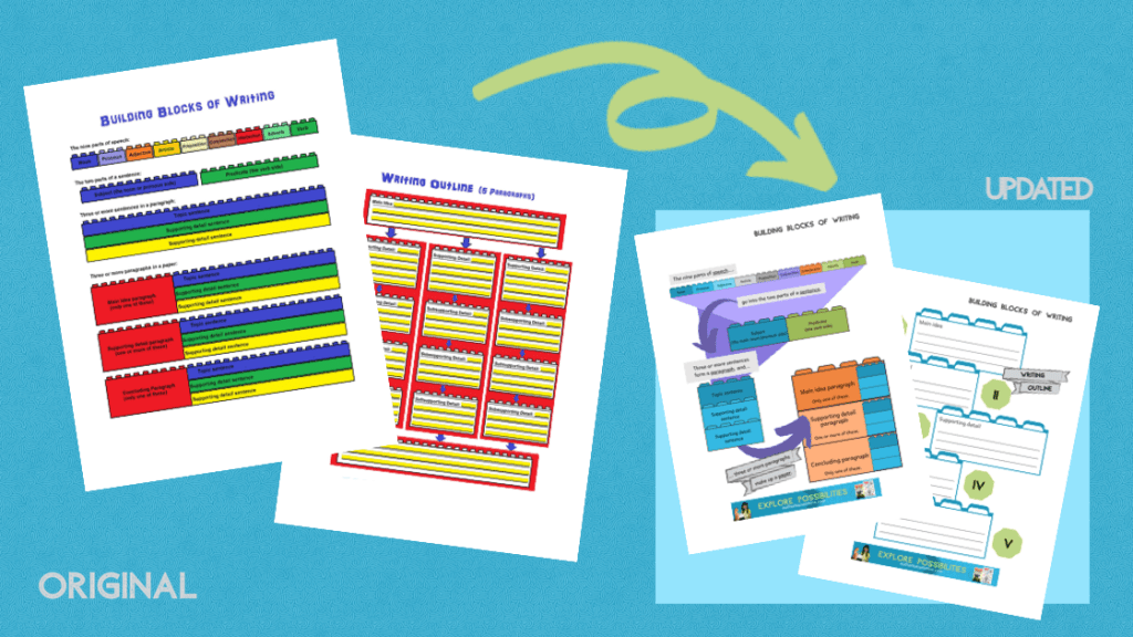 That’s initially how I got started creating teaching resources—with the building blocks of writing graphical organizer in the picture below (the updated one is here).