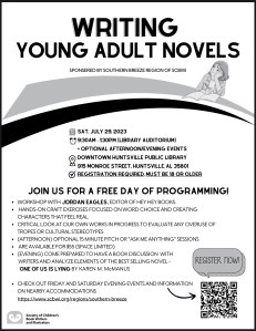 Free Young Adult workshop hosted by SCBWI Southern Breeze Regional Chapter. July 29th. For details and to register: https://www.scbwi.org/events/young-adult-novel-writing-intensive