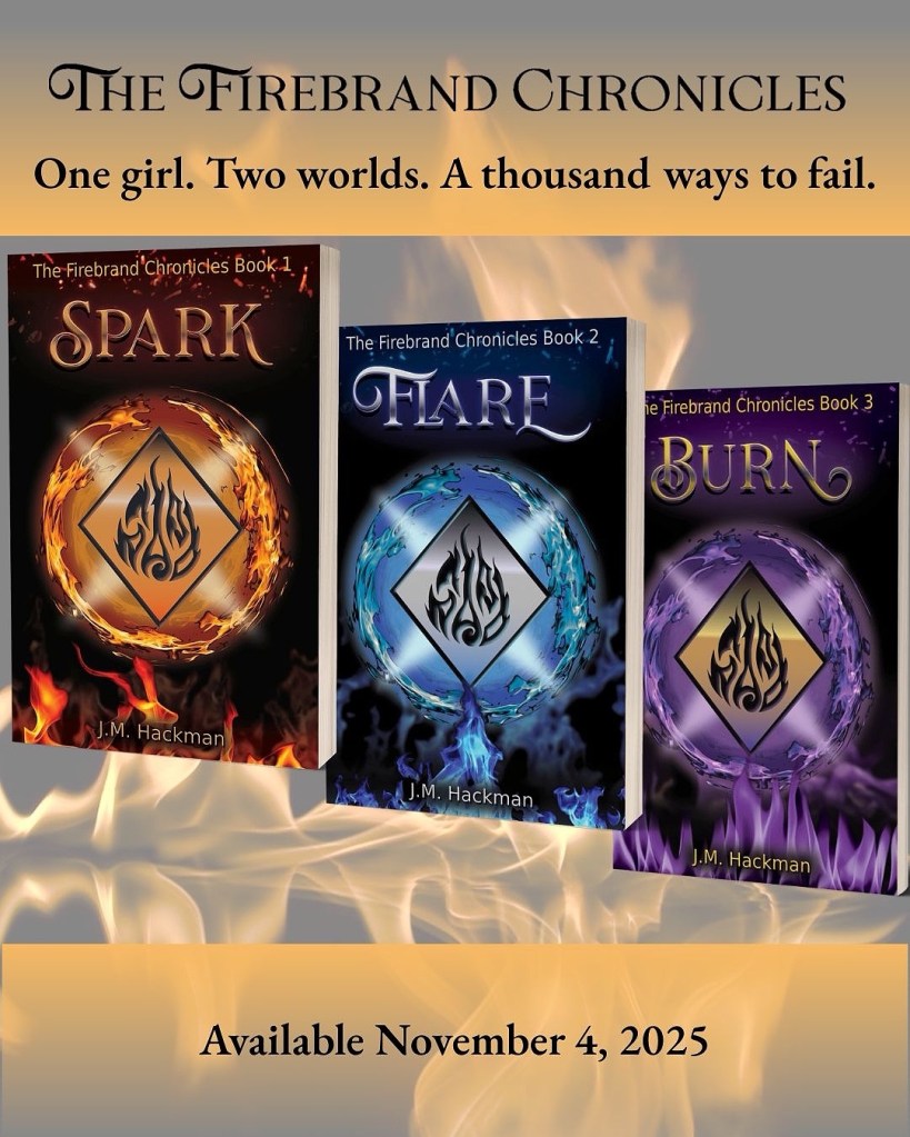 Spark, Flare and Burn, J.M. Hackman’s complete Firebrand Series available November 4, 2025 Amazon.